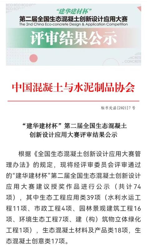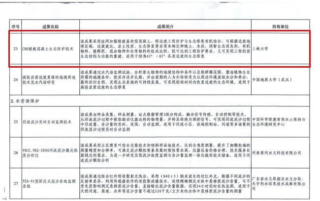 為深入貫徹落實(shí)習(xí)近平總書記關(guān)于保障國(guó)家水安全重要講話精神,積極推動(dòng)新階段水利高質(zhì)量發(fā)展,切實(shí)做好成熟適用水利科技成果推廣運(yùn)用,切實(shí)提高行業(yè)科技水平,水利部組織開(kāi)展了2021年度成熟適用水利科技成果的征集、評(píng)審與公示工作。我公司研發(fā)的核心技術(shù)“CBS植被混凝土生態(tài)防護(hù)技術(shù)”獲得入選,其應(yīng)用項(xiàng)目“廣西馱英水庫(kù)樞紐工程混凝土邊坡植被混凝土生態(tài)修復(fù)工程”在2021年度“建華建材杯”第二屆全國(guó)生態(tài)混凝土創(chuàng)新設(shè)計(jì)應(yīng)用大賽榮獲一等獎(jiǎng)。