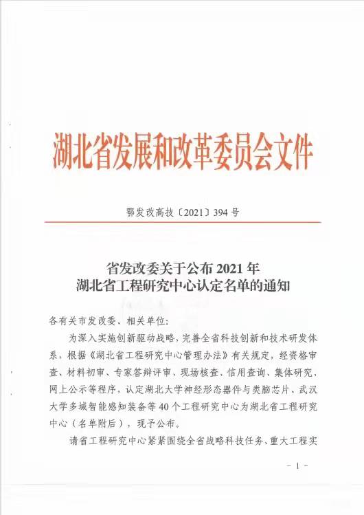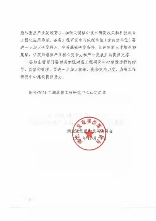 湖北省發展和改革委員會下發《省發改委關于公布2021年湖北省工程研究中心認定名單的通知》(鄂發改高技〔2021〕394號),湖北潤智生態科技有限公司和三峽大學聯合申報的“水泥基生態修復技術湖北省工程研究中心”獲批認定。